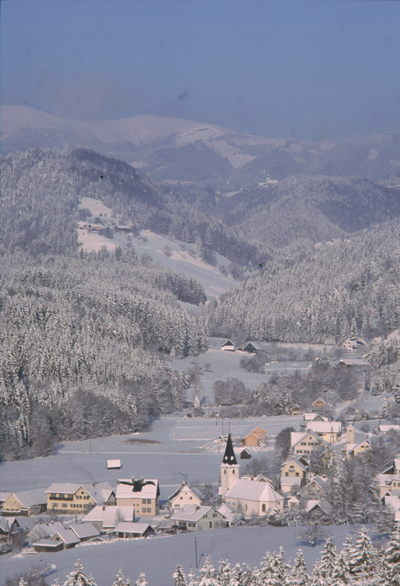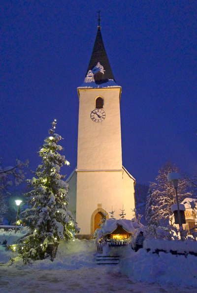 Regentropfen auf einem Fenster mit Blick auf einen Kirchturm, eine Uhr und ein nahe gelegenes Gebäude, im Hintergrund ist Sonnenlicht zu sehen.
